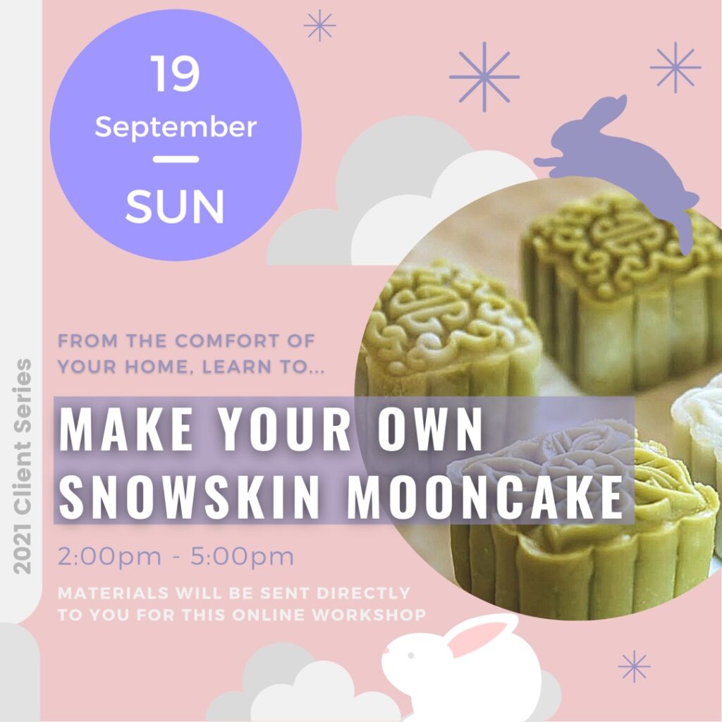 We decided to try out a hybrid virtual/physical event and this time we decided to make snowskin mooncakes! Ingredients and materials were mailed to clients’ homes ahead of time. On the day itself, we were all tuned in on zoom for the instructor’s guidance.